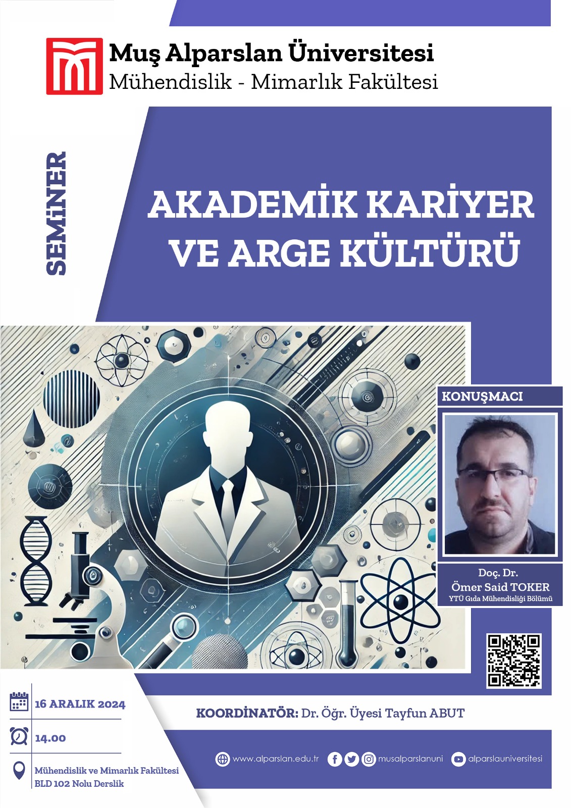 Doç. Dr. Ömer Said TOKER Tarafından 16/12/2024 Pazartesi Günü Saat 14:00'da "Akademik Kariyer ve ARGE Kültürü" Konulu Seminer Düzenlenecektir. Katılımınızı Bekleriz.