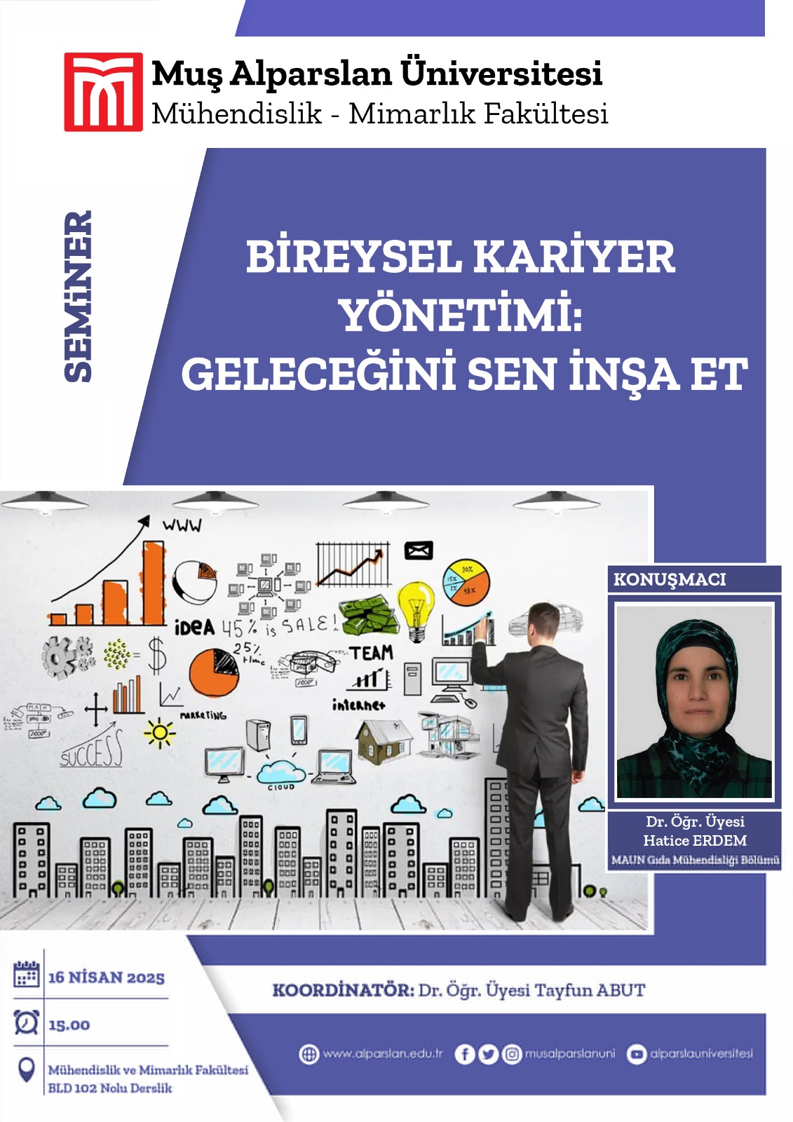 Dr. Öğretim Üyesi Hatice ERDEM Tarafından 16/04/2025 Çarşamba Günü Saat 15:00'da "Bireysel Kariyer Yönetimi: Geleceğini Sen İnşa Et" Konulu Seminer Düzenlenecektir. Katılımınızı Bekleriz.